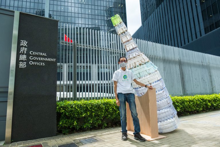交流會前,多個環團代表在會場外豎起由279個飲品膠樽砌成的大型膠樽裝置,喻意香港膠樽圍城與回收不濟的窘境,藉此促請署方落實相關的生產者責任法規時,應採納國際行之有限的按樽制,按樽金額至少一元。