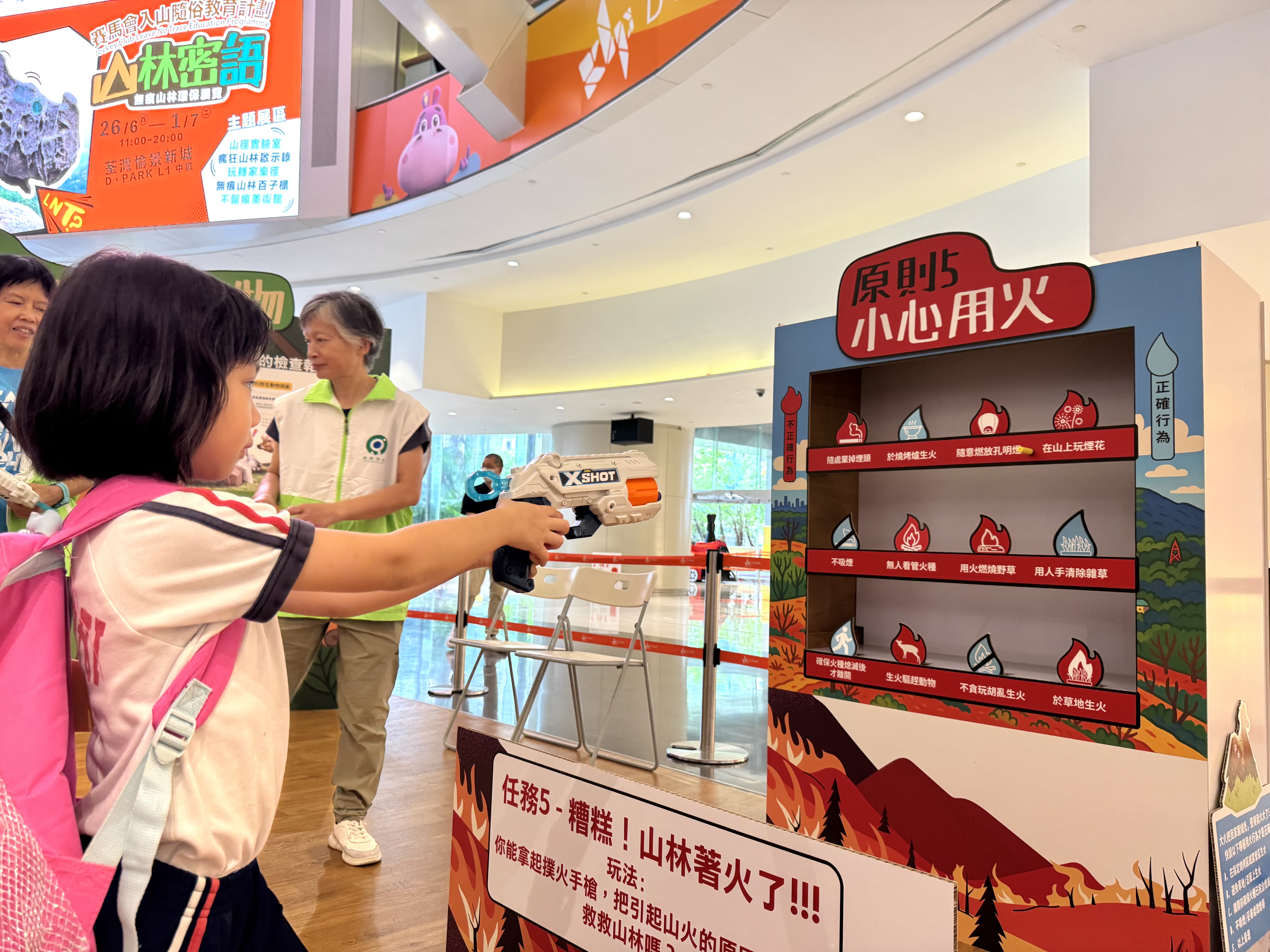 展覽的一大亮點是【玩轉家樂徑】展區,它專為親子同樂而設計,將「無痕山林」七大原則巧妙地融入七個互動遊戲之中,讓環保教育不再是單向說教。在這裡,大小朋友都可以化身探險家,拿起紫外光電筒,尋找隱藏的山徑垃圾分解年份,學習「自己垃圾自己帶走」;又可以變身山林消防員,拿起「撲火手槍」撲滅各種引發山火的危機,學習小心用火的重要性;展區更有大型牛牛模型,參觀者可伸手到牛的肚子裏,了解牛經常誤吃人類垃圾的問題,讓參觀者透過觸感和視覺衝擊,深刻感受郊野垃圾的禍害。