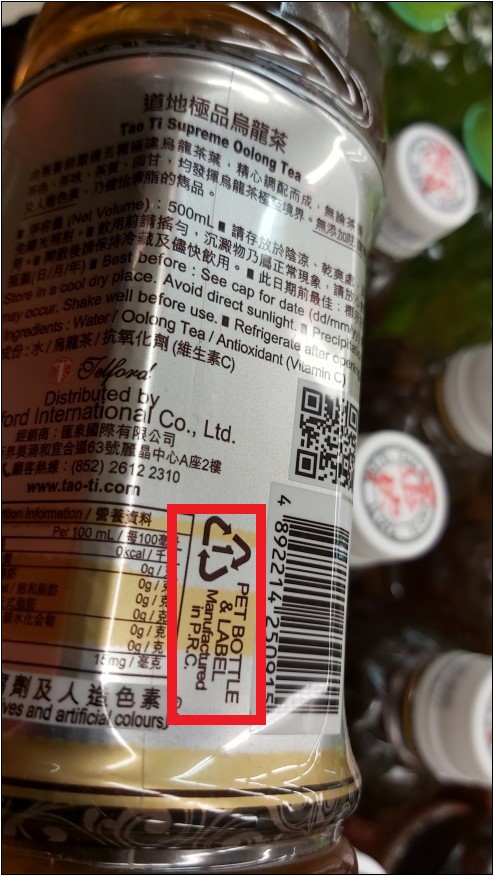 有品牌清楚標示出樽身和招紙均用上PET物料