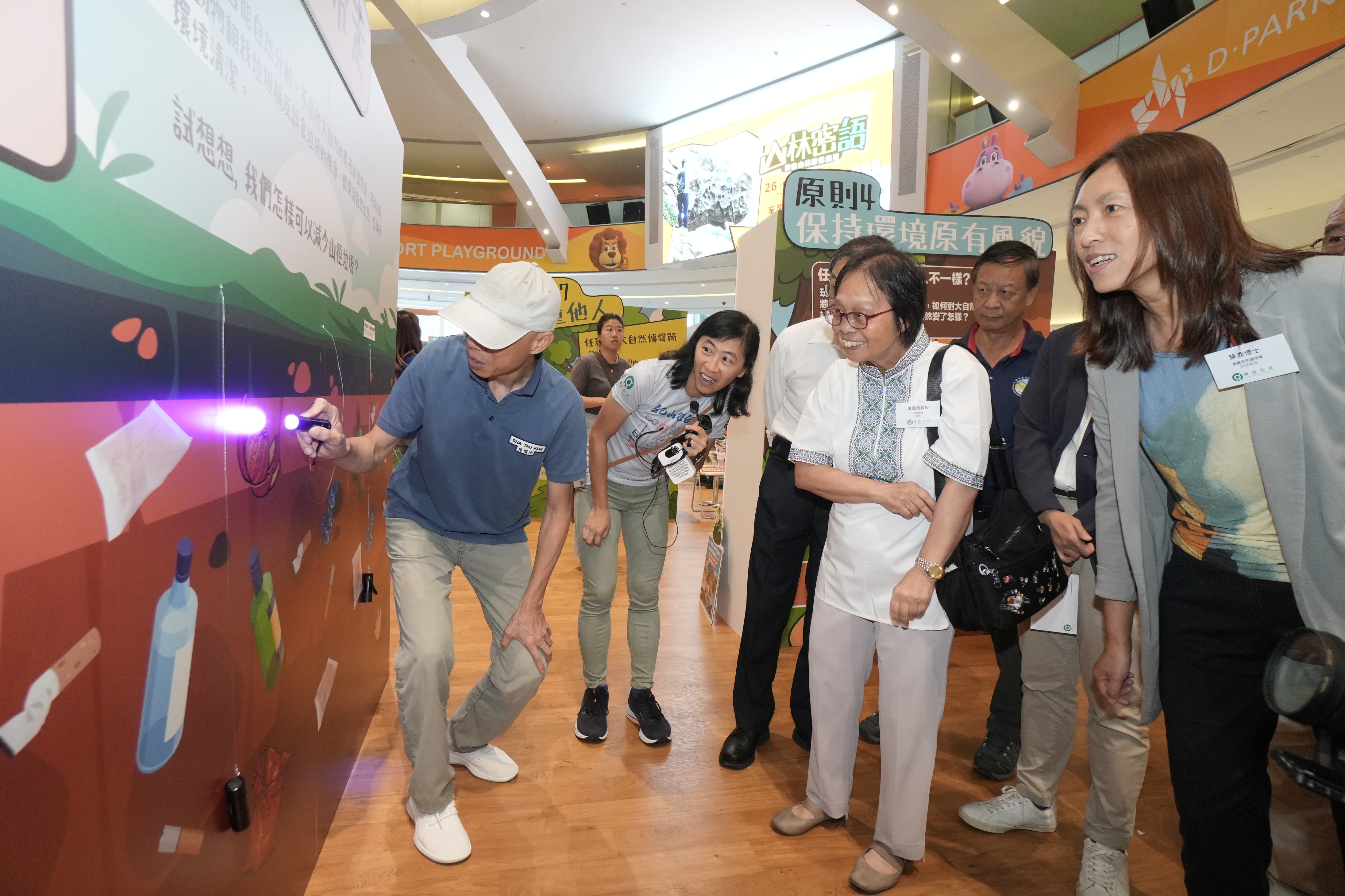 展覽的一大亮點是【玩轉家樂徑】展區,它專為親子同樂而設計,將「無痕山林」七大原則巧妙地融入七個互動遊戲之中,讓環保教育不再是單向說教。在這裡,大小朋友都可以化身探險家,拿起紫外光電筒,尋找隱藏的山徑垃圾分解年份,學習「自己垃圾自己帶走」;又可以變身山林消防員,拿起「撲火手槍」撲滅各種引發山火的危機,學習小心用火的重要性;展區更有大型牛牛模型,參觀者可伸手到牛的肚子裏,了解牛經常誤吃人類垃圾的問題,讓參觀者透過觸感和視覺衝擊,深刻感受郊野垃圾的禍害。