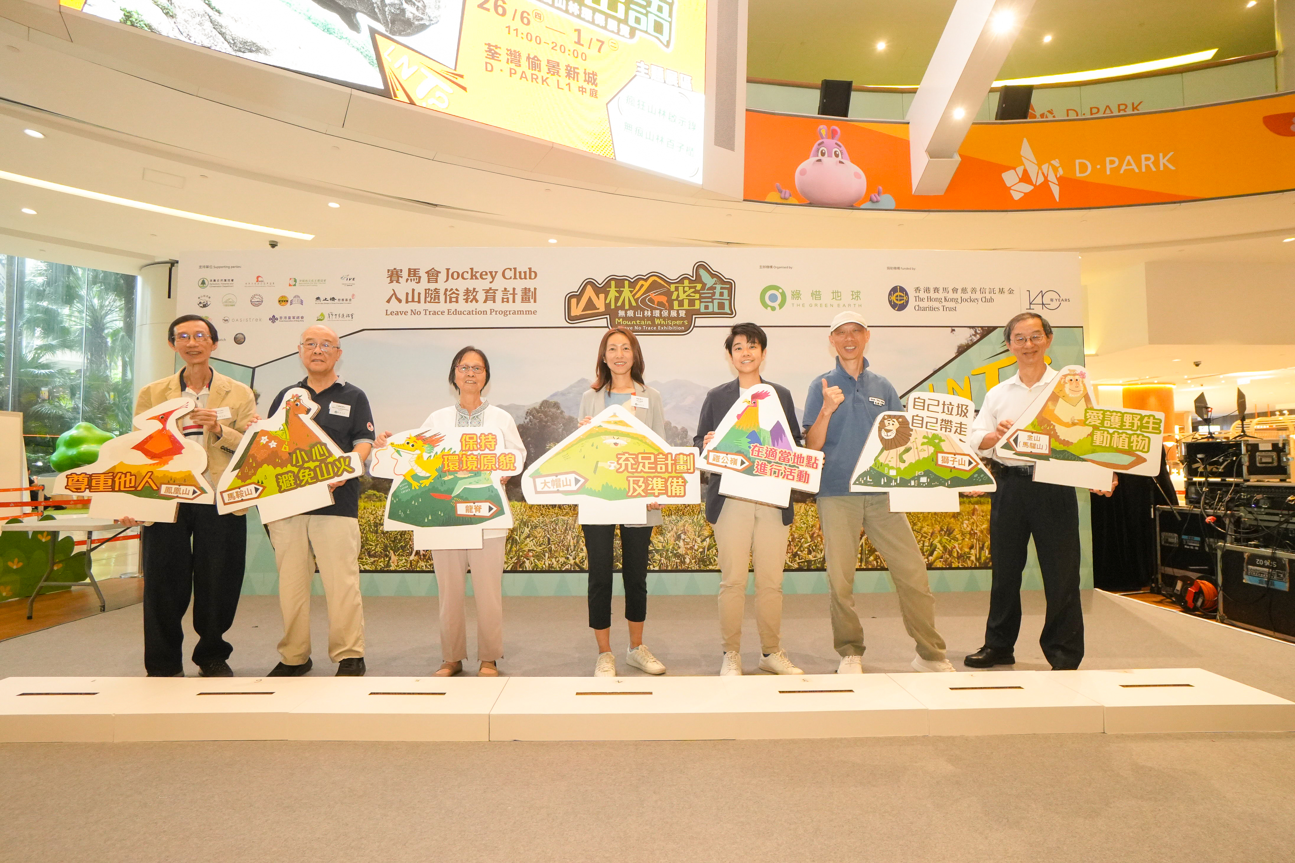 (2025 年 6 月 28 日 新聞稿)由香港賽馬會慈善信託基金捐助、綠惜地球主辦的「賽馬會入山隨俗教育計劃」於 6 月 26 日至 7 月 1 日舉行「《山林密語》 無痕山林環保展覽」,並於今天在荃灣愉景新城 D·PARK 舉行啟動禮。典禮邀得漁農自然護理署助理署長(郊野公園) 葉彥博士、香港賽馬會慈善事務經理葉淑欣女士、前環境局局長及無止橋慈善基金主席黃錦星先生、香港中文大學地理與資源管理系客座教授及漁護署前助理署長王福義博士、香港鄉郊基金主席及前香港天文台台長林超英先生、綠惜地球董事及香港城市大學化學系榮休教授譚鳳儀教授等擔任主禮嘉賓,與近百位自然教育團體代表共聚一堂,分享如何實踐「無痕山林」。是次展覽作為計劃的成果展,旨在透過多元化的藝術創作、互動遊戲、科學實驗及展覽,推廣「無痕山林」(Leave No Trace) 及「可持續山徑」理念,呼籲公眾保持對大自然的尊重與愛護。