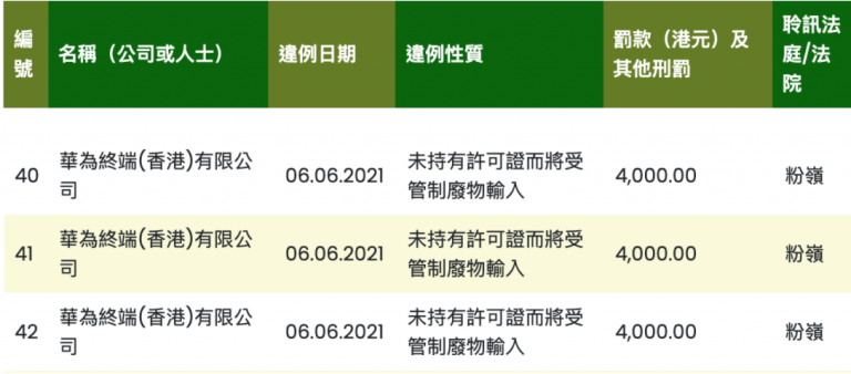 "「華為終端(香港)有限公司」非法進口電子廢物 定罪並遭判罰款 "